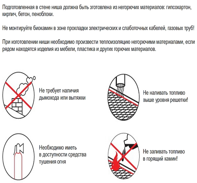 Рекомендации по установке и безопасной эксплуатации биокамина